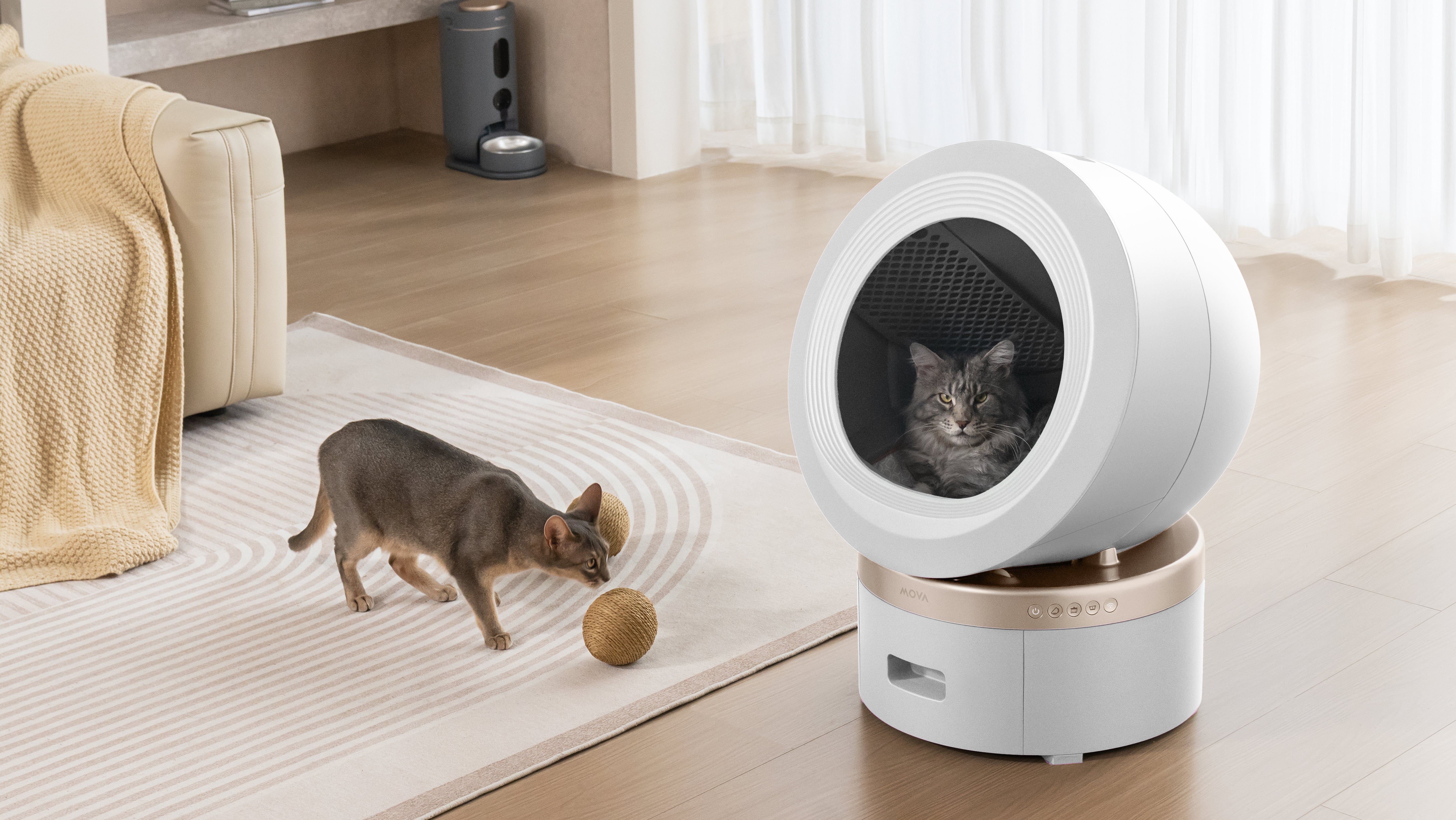Przestronna, półotwarta konstrukcja: Chwaląca się przestronnym wnętrzem — 55,32 cm × 58,12 cm × 76,43 cm — jest odpowiednia dla kotów o wadze od ok. 1,5 - 10 kg. Niezależnie od tego, czy masz dużego kota, czy wiele kotów, MOVA jest zaprojektowana, aby dobrze dbać o nie wszystkie.