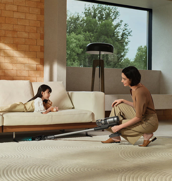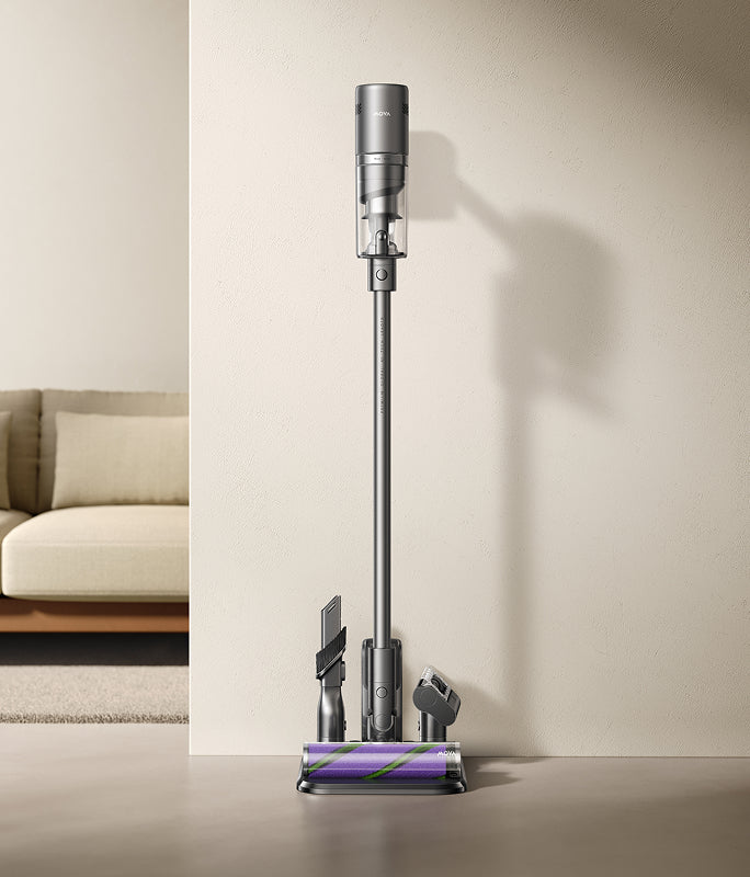 Pionowa stacja dokująca umożliwia wygodne korzystanie z odkurzacza w dowolnym momencie, bez konieczności wiercenia w ścianie. Służy jako organizer na akcesoria oraz stacja ładująca, która dba o to, by odkurzacz był zawsze gotowy do pracy. Wbudowane zabezpieczenie chroni przed przeładowaniem, zapewniając bezpieczne i energooszczędne ładowanie.