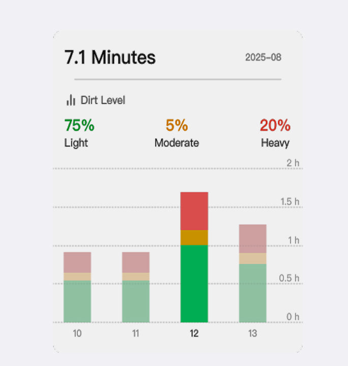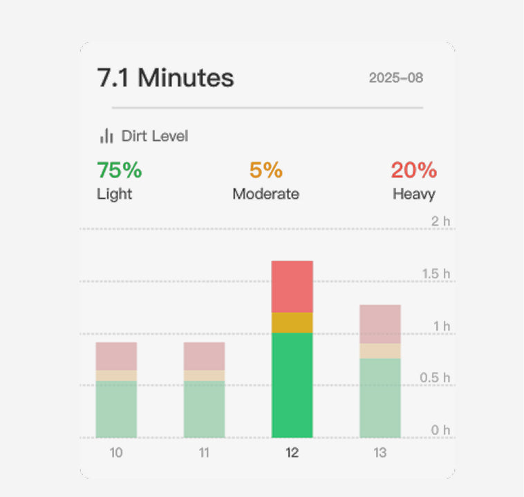 Rejestruj czas trwania każdej sesji sprzątania, używany tryb i sposób użytkowania w celu łatwego przeglądania i analizy.