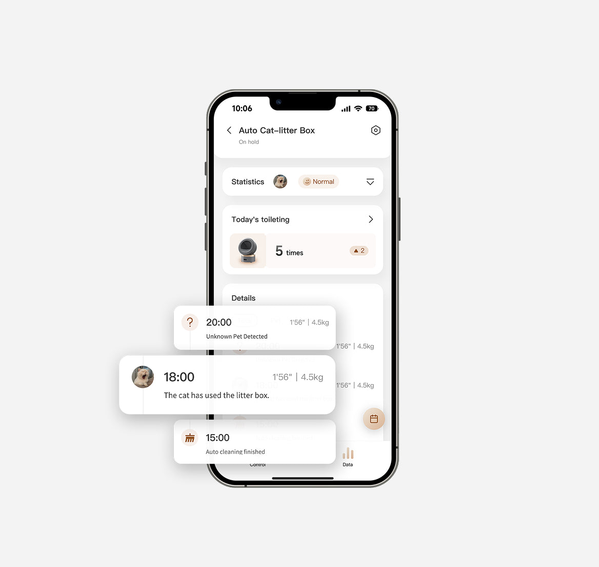 Aplikacja obsługuje profile wielu kotów dzięki wbudowanemu czujnikowi wagi. Indywidualnie śledzi trendy wagowe i nawyki toaletowe każdego z nich. Długoterminowe monitorowanie danych pozwala wcześnie wykrywać nieprawidłowości, aby zmniejszyć ryzyko chorób.