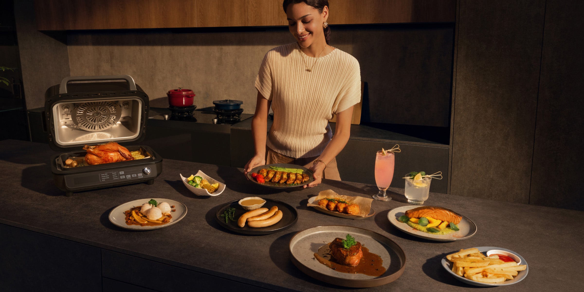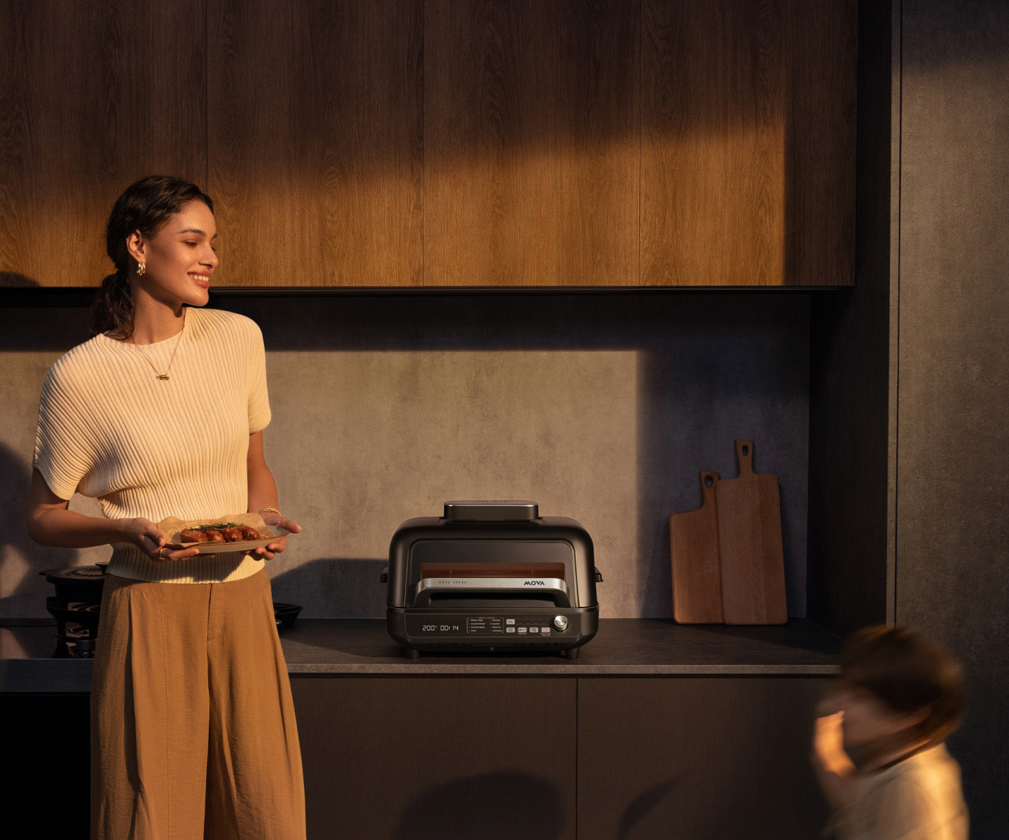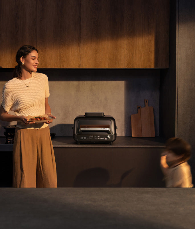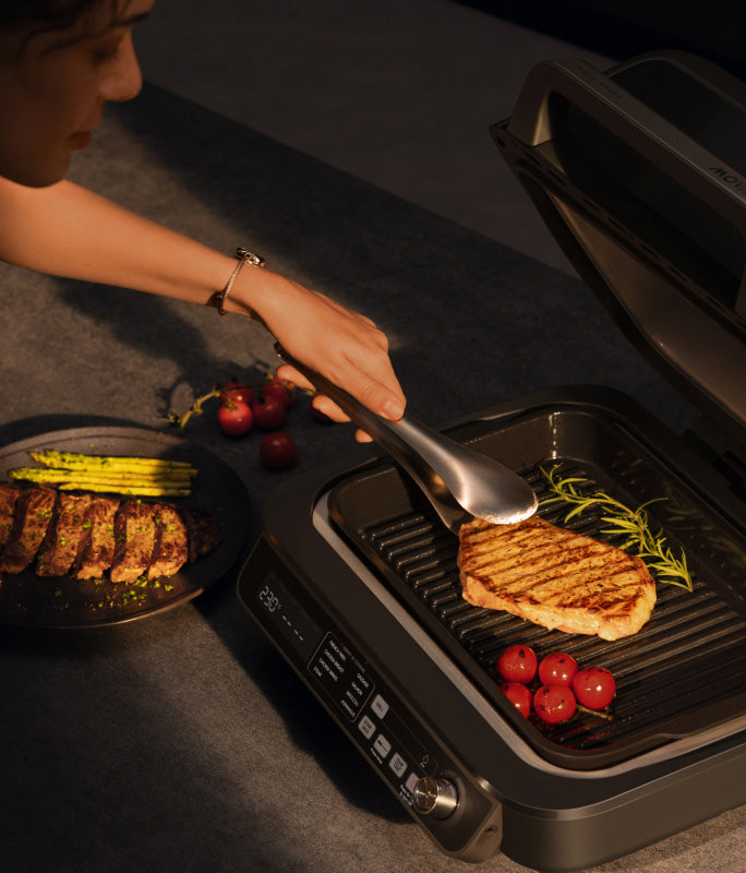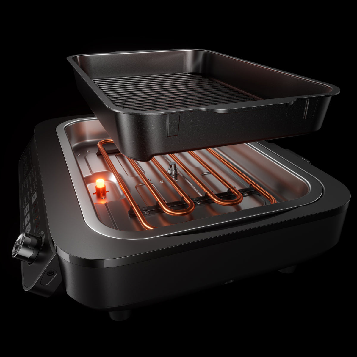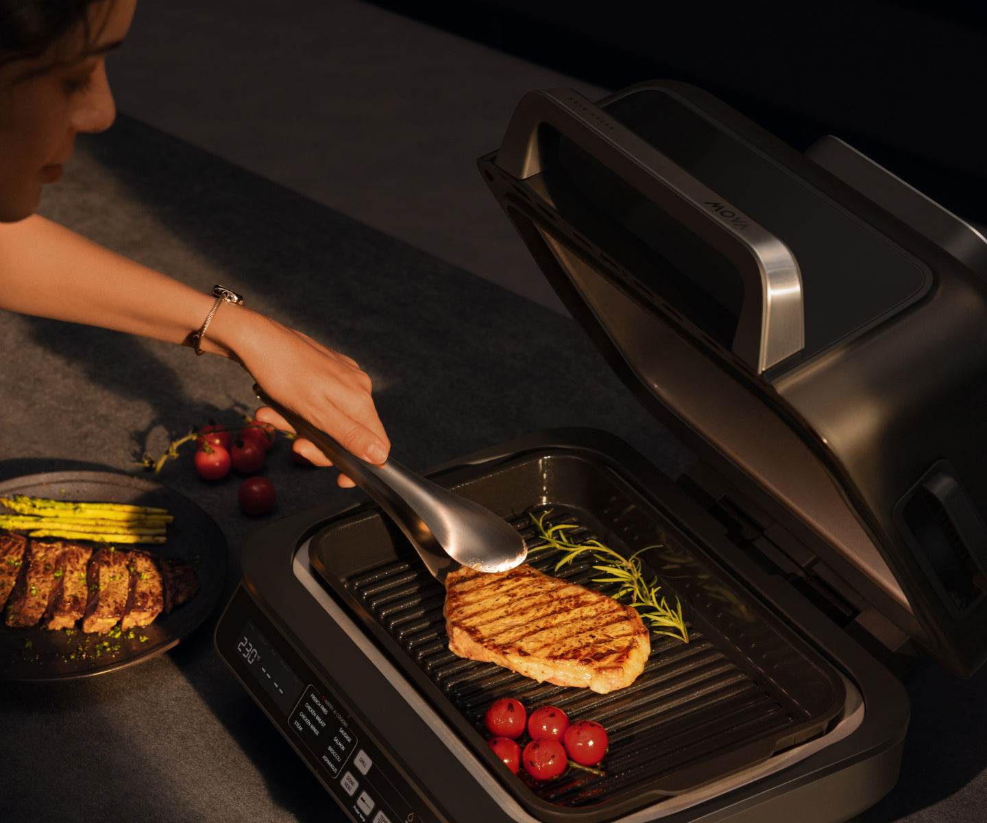 To coś więcej niż grill domowy. To wielofunkcyjne urządzenie z łatwością radzi sobie z różnorodnymi zadaniami — od grillowania i smażenia na płycie, po funkcję piekarnika i smażenia za pomocą funkcji airfryer. Wprowadza wszechstronność i wygodę prosto na Twój blat kuchenny.
