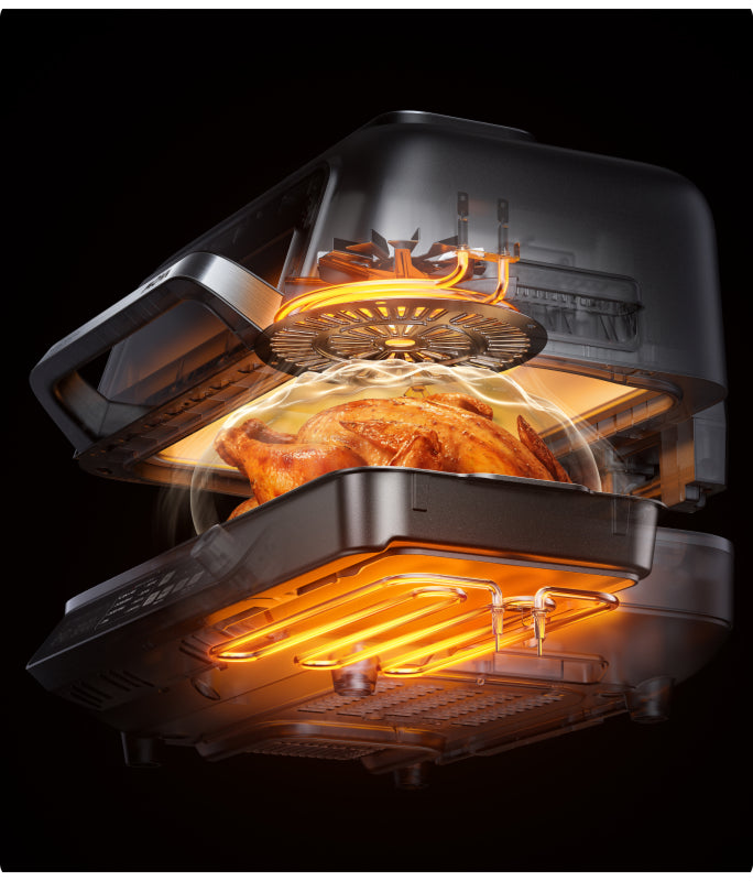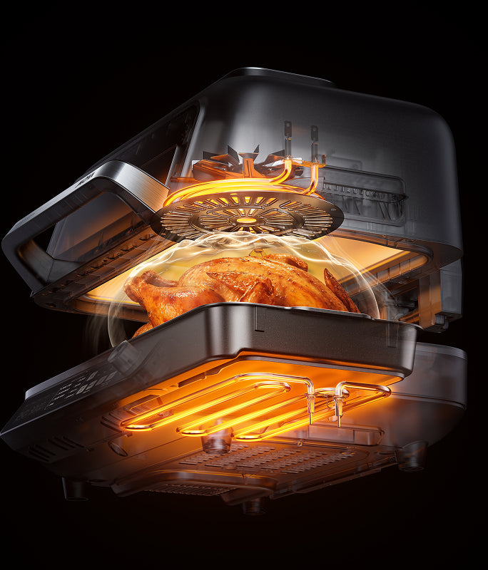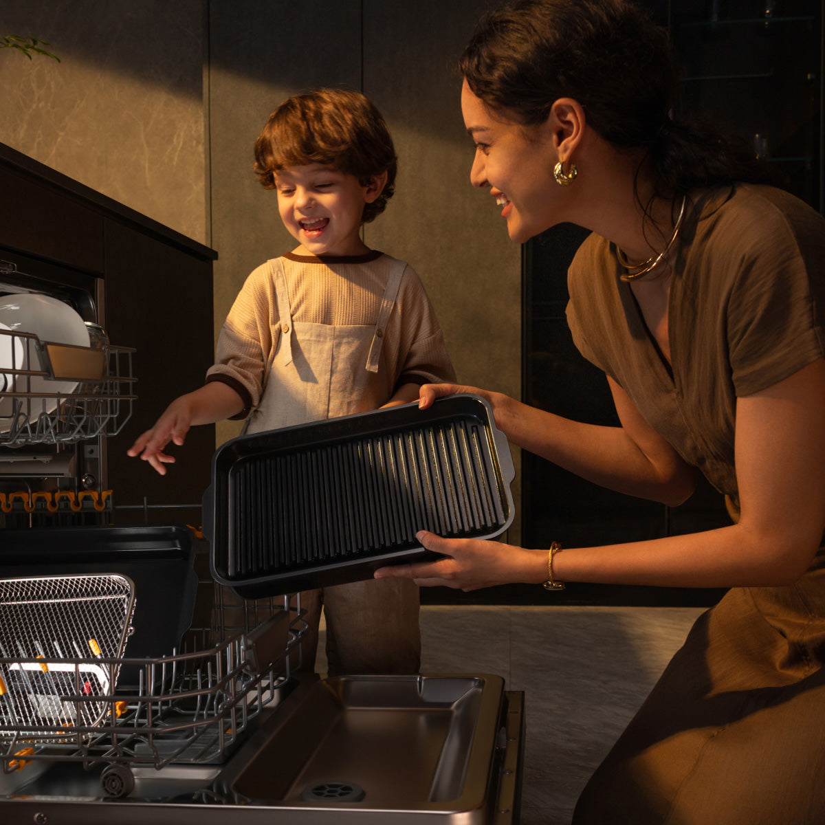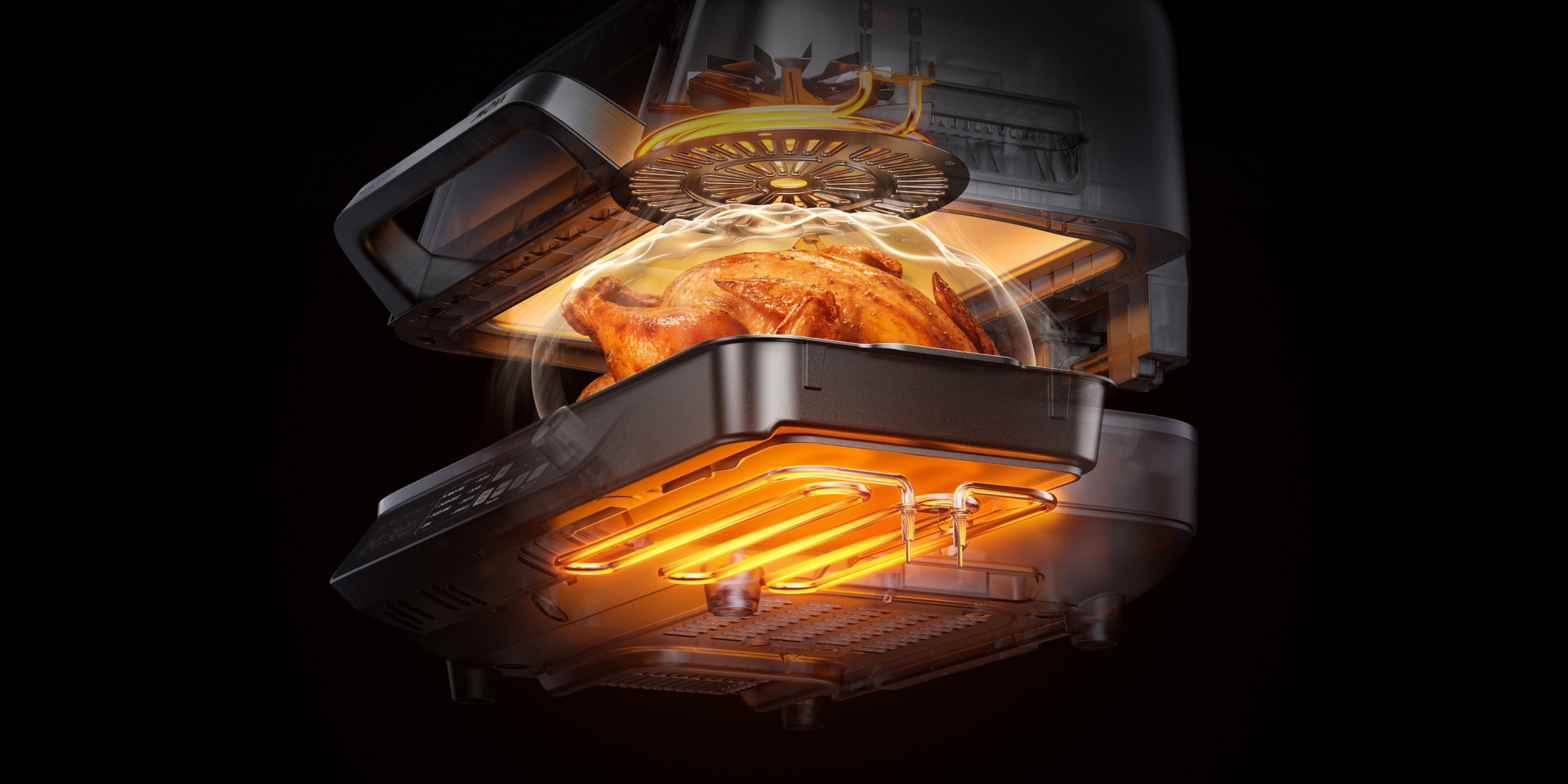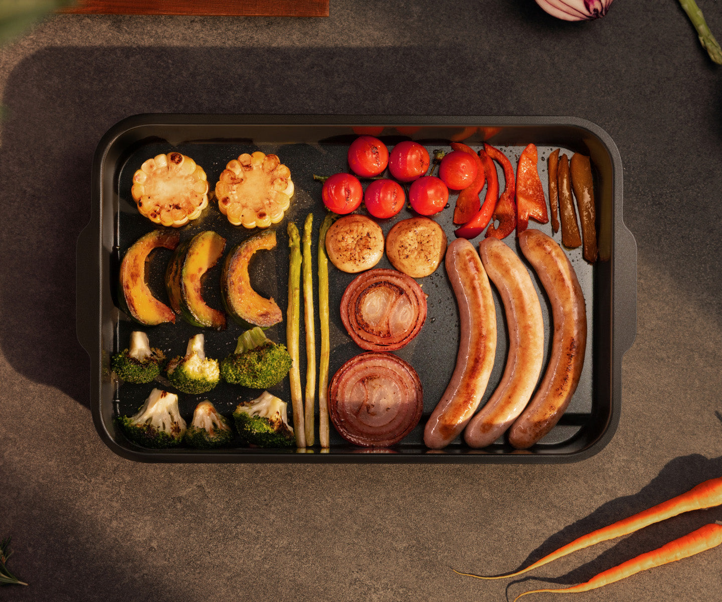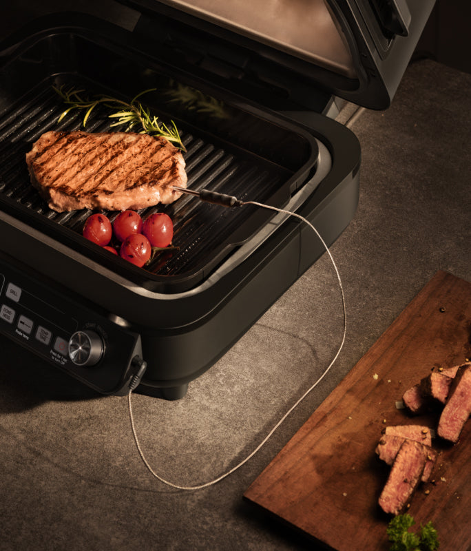To coś więcej niż grill domowy. To wielofunkcyjne urządzenie z łatwością radzi sobie z różnorodnymi zadaniami — od grillowania i smażenia na płycie, po funkcję piekarnika i smażenia za pomocą funkcji airfryer. Wprowadza wszechstronność i wygodę prosto na Twój blat kuchenny.
