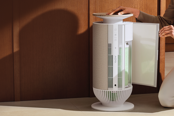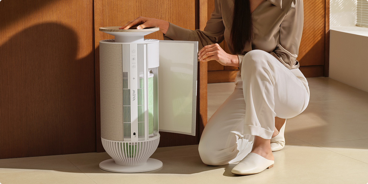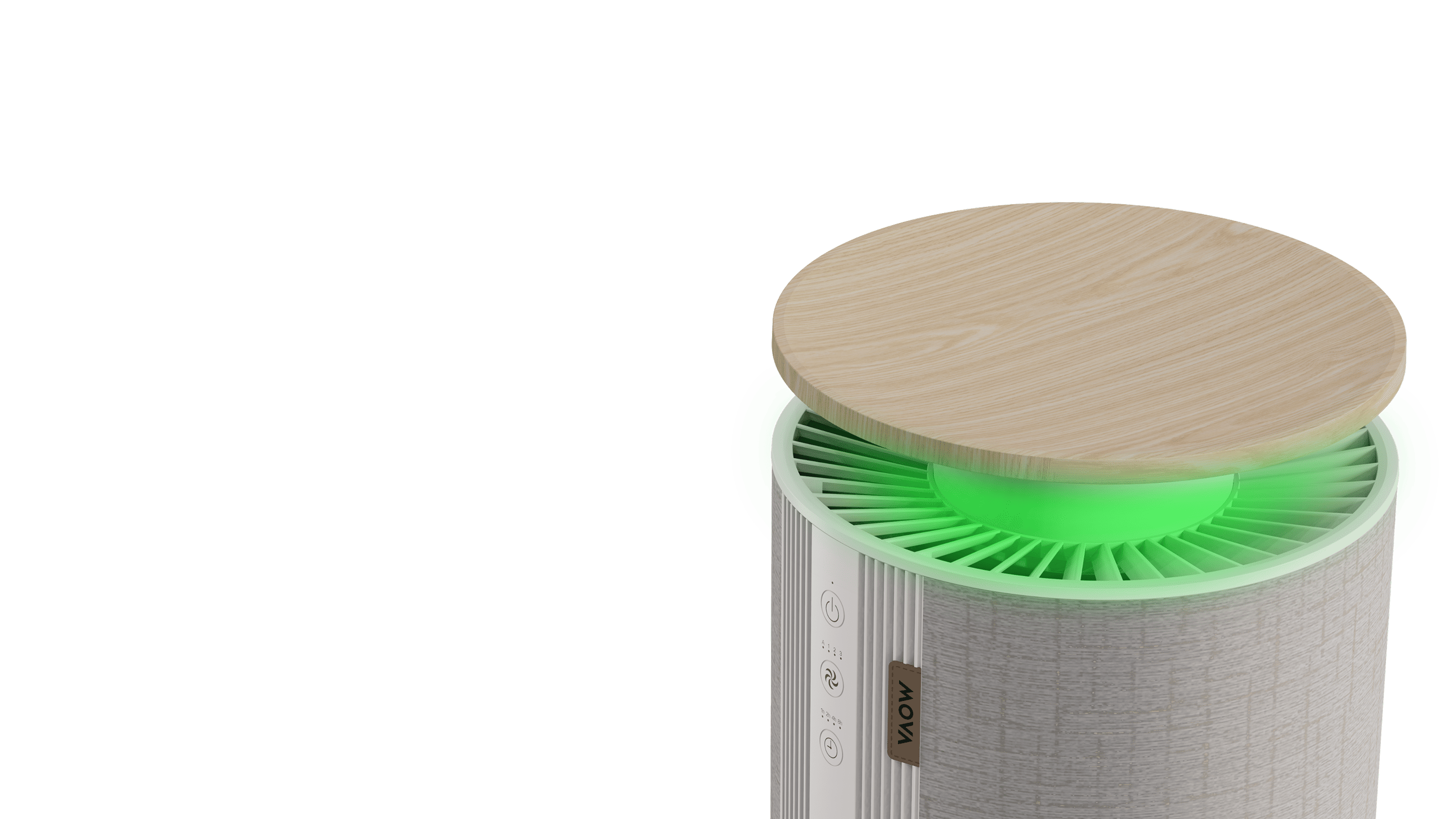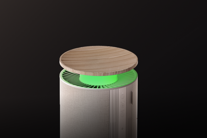 Inteligentne oświetlenie nastrojowe zmienia kolor w zależności od jakości powietrza wewnątrz pomieszczenia: świeci na zielono, gdy powietrze jest czyste, na żółto przy poziomie umiarkowanym, a na czerwono, gdy jakość jest niska. Intuicyjne sygnały wizualne ułatwiają relaks i pozwalają łatwo zarządzać ustawieniami poprzez aplikację.