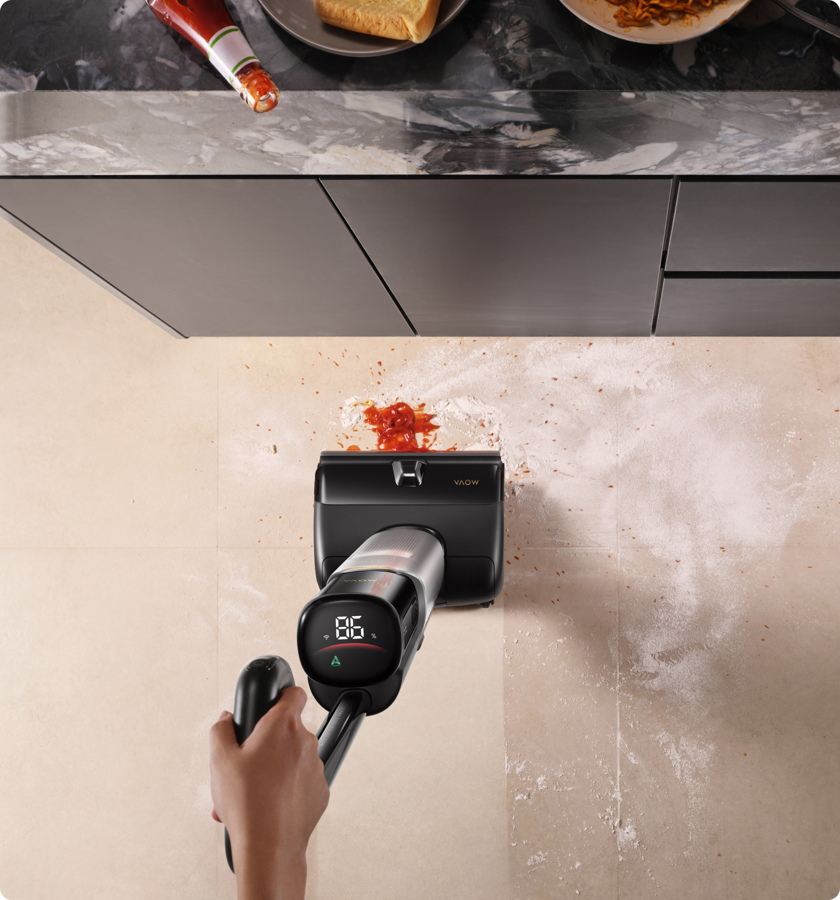 Model X4 Pro pozwala na natychmiastowe mycie gorącą wodą w temperaturze 80°C* dzięki funkcji zraszanie SpotHeat™ o mocy 20 000 Pa. Podczas zaledwie 2 przejazdów* strumień gorącej wody szybko rozpuszcza trudne, zaschnięte plamy na podłodze — możesz zapomnieć o szorowaniu uporczywych zabrudzeń.