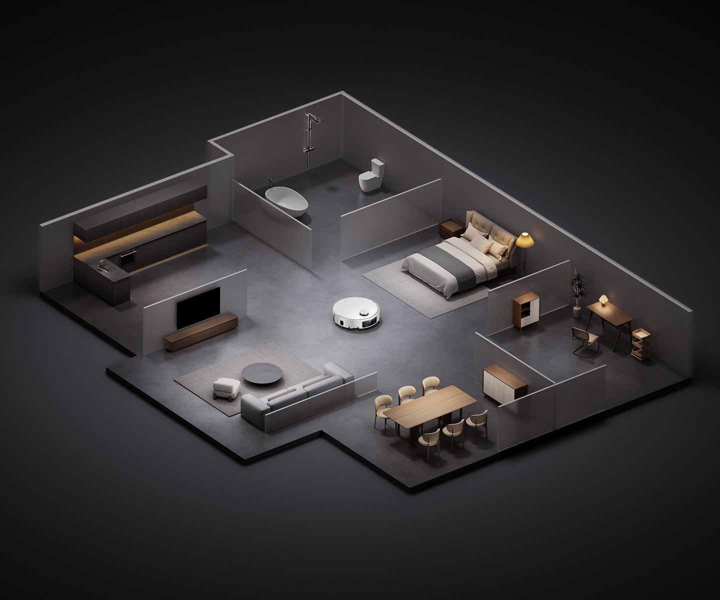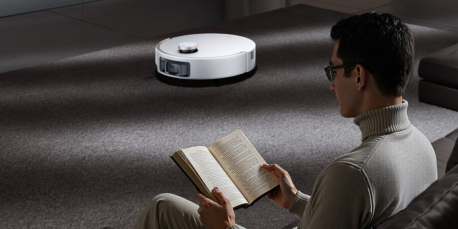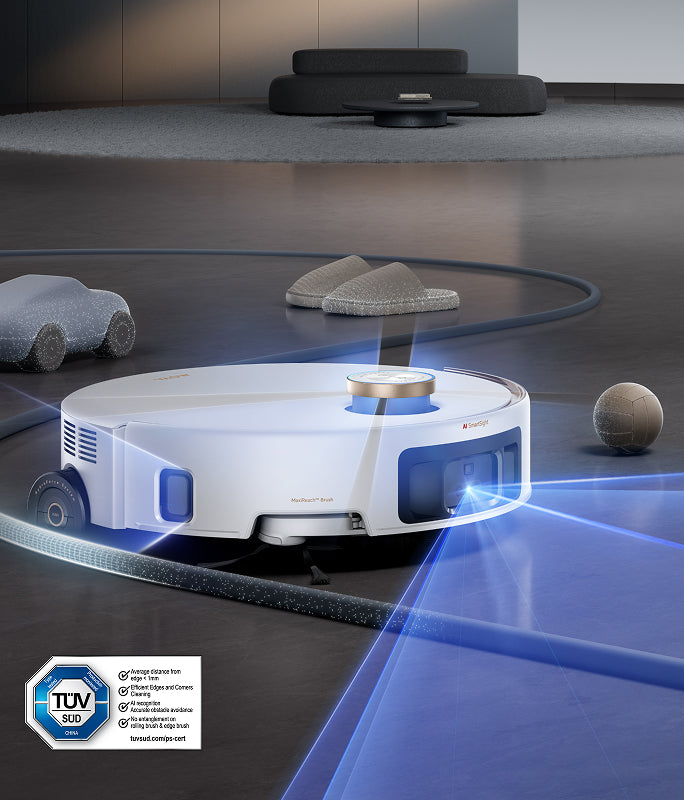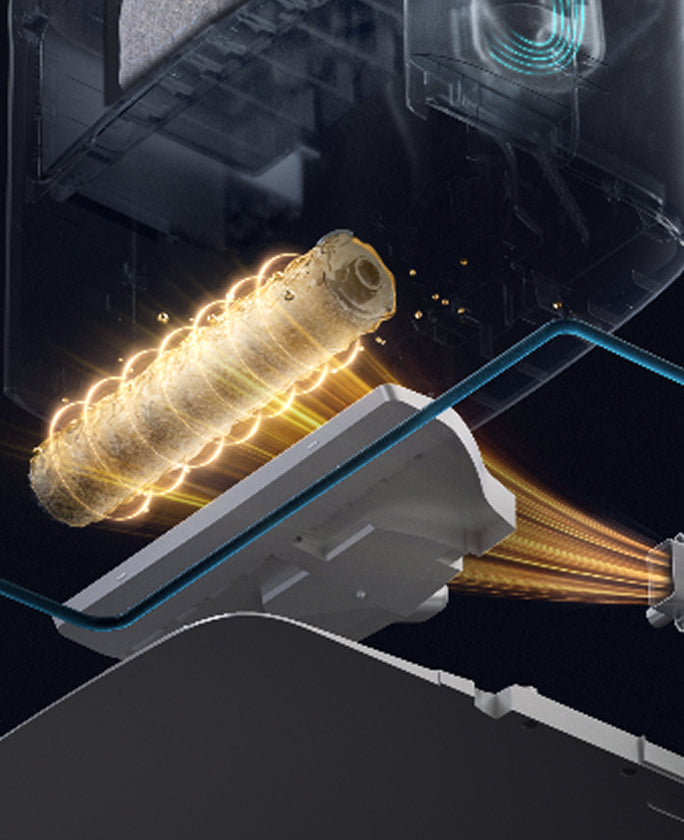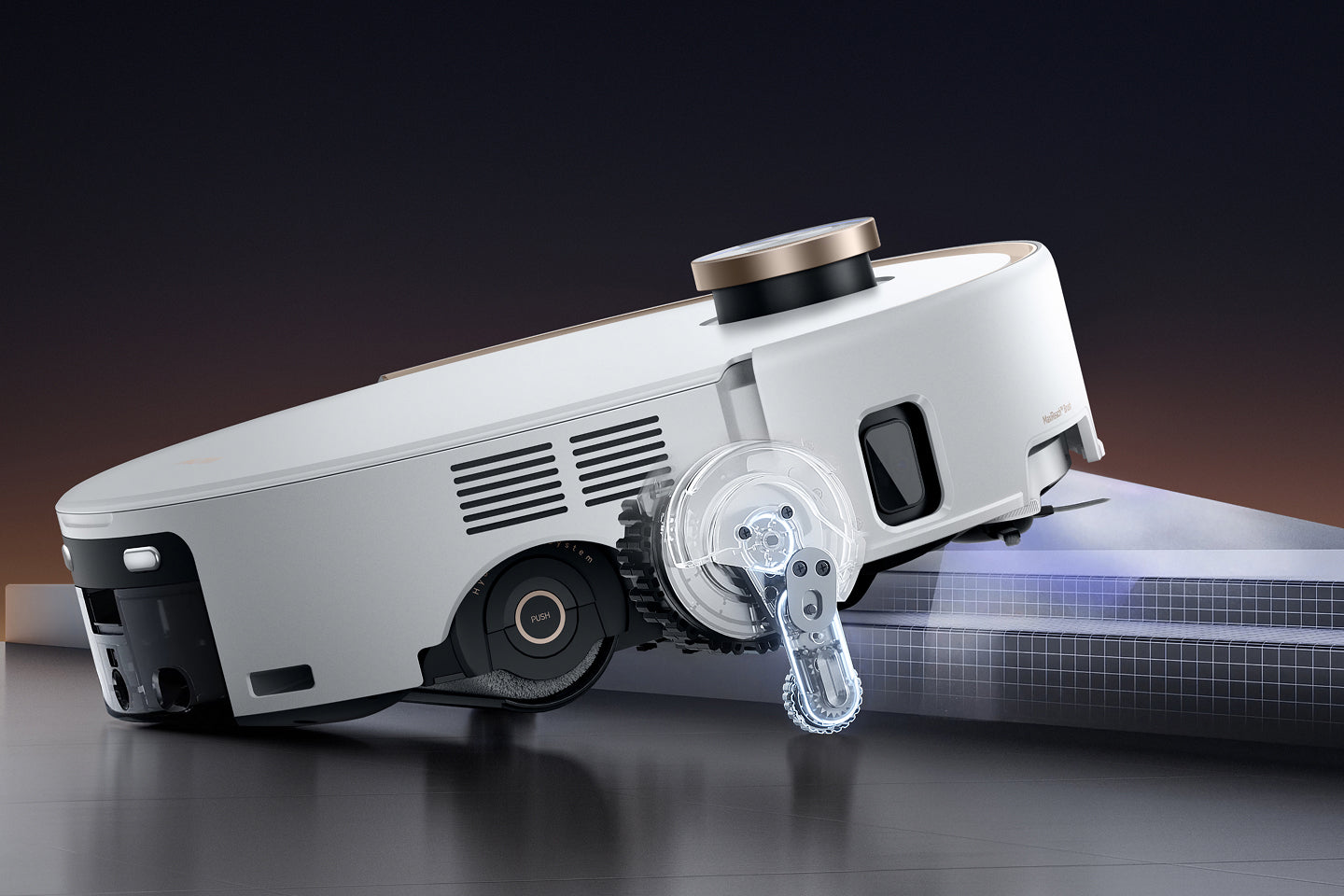 Robot Z60 Ultra Roller Complete wyposażono w chowany czujnik LiDAR o milimetrowej dokładności, który dostosowuje się do Twojej przestrzeni – unosi się w otwartych obszarach i opuszcza w niskich. Po schowaniu, ultracienki korpus o wysokości 96 mm* z łatwością wsunie się pod sofy i łóżka, docierając tam, gdzie ukrywa się kurz, aby zapewnić kompleksowe sprzątanie całego domu – nawet w trudno dostępnych miejscach.