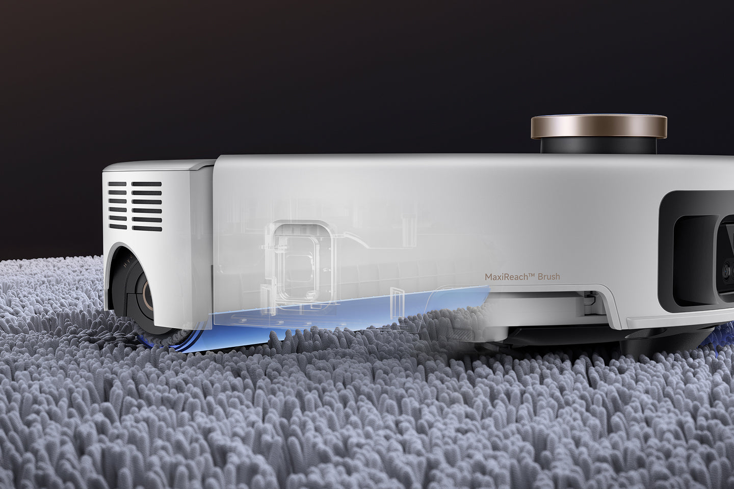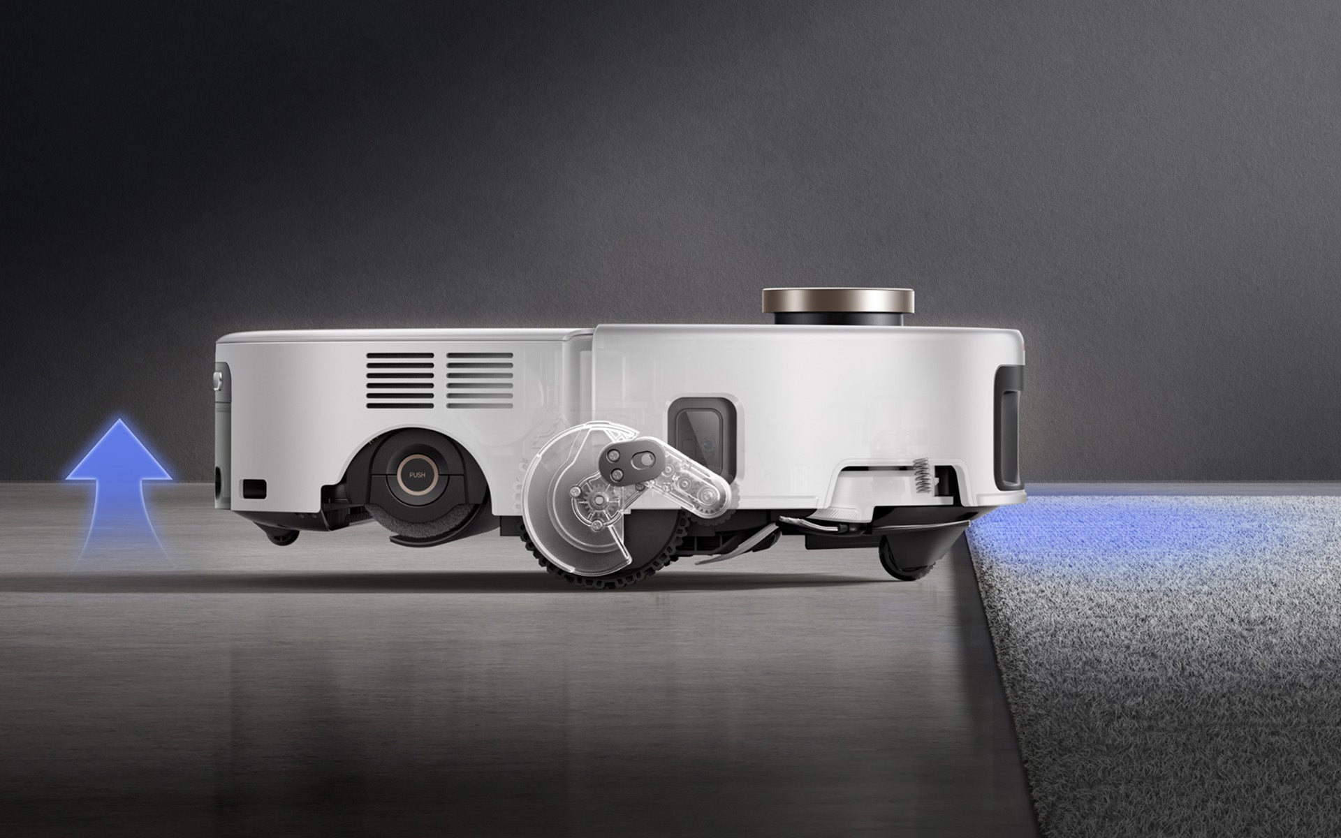 Po wykryciu niskich przeszkód, takich jak dywan shaggy, robot automatycznie podnosi cały korpus, aby zapewnić płynniejszy przejazd, co pomaga uniknąć zahaczania i pominięcia stref do czyszczenia.
