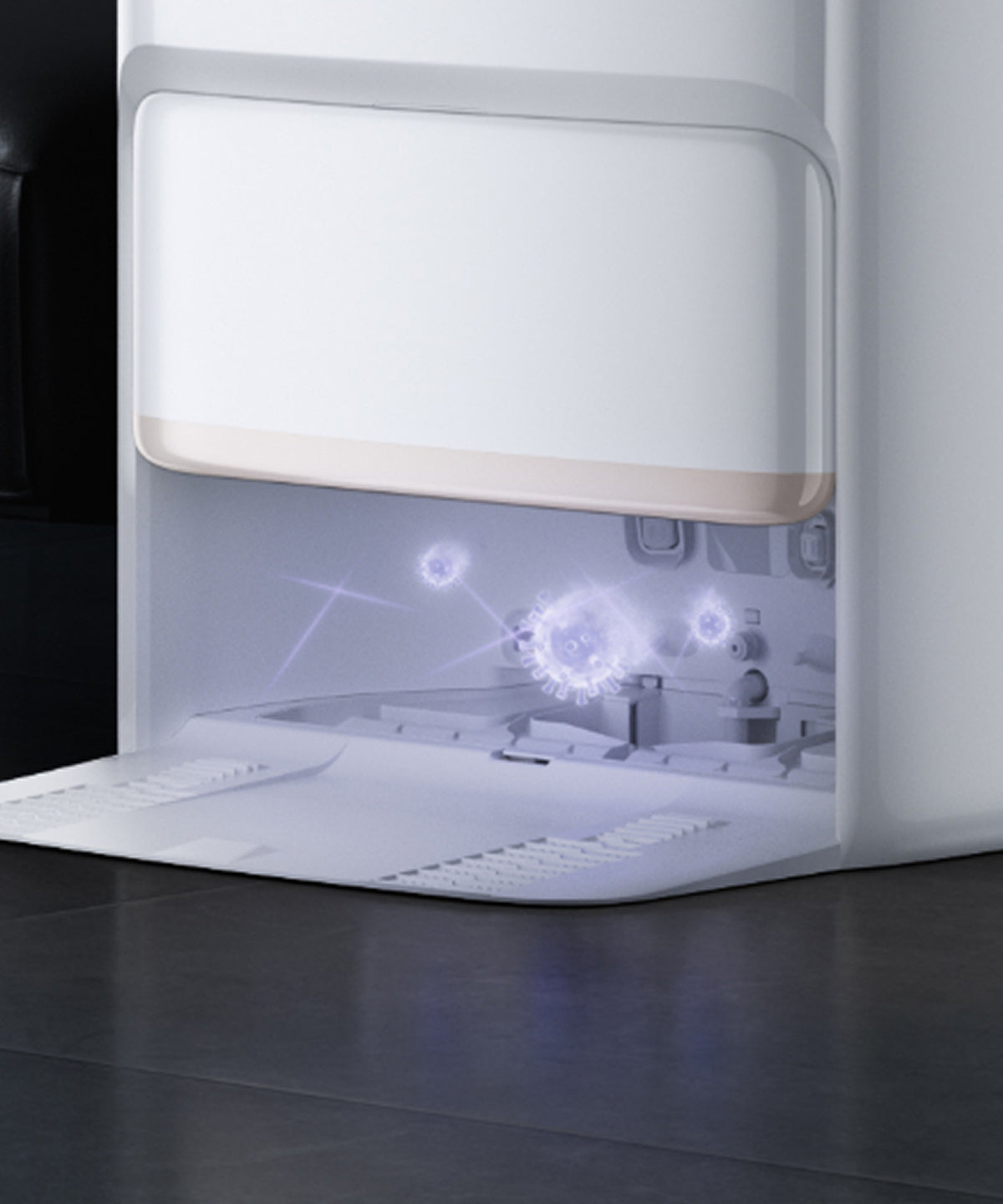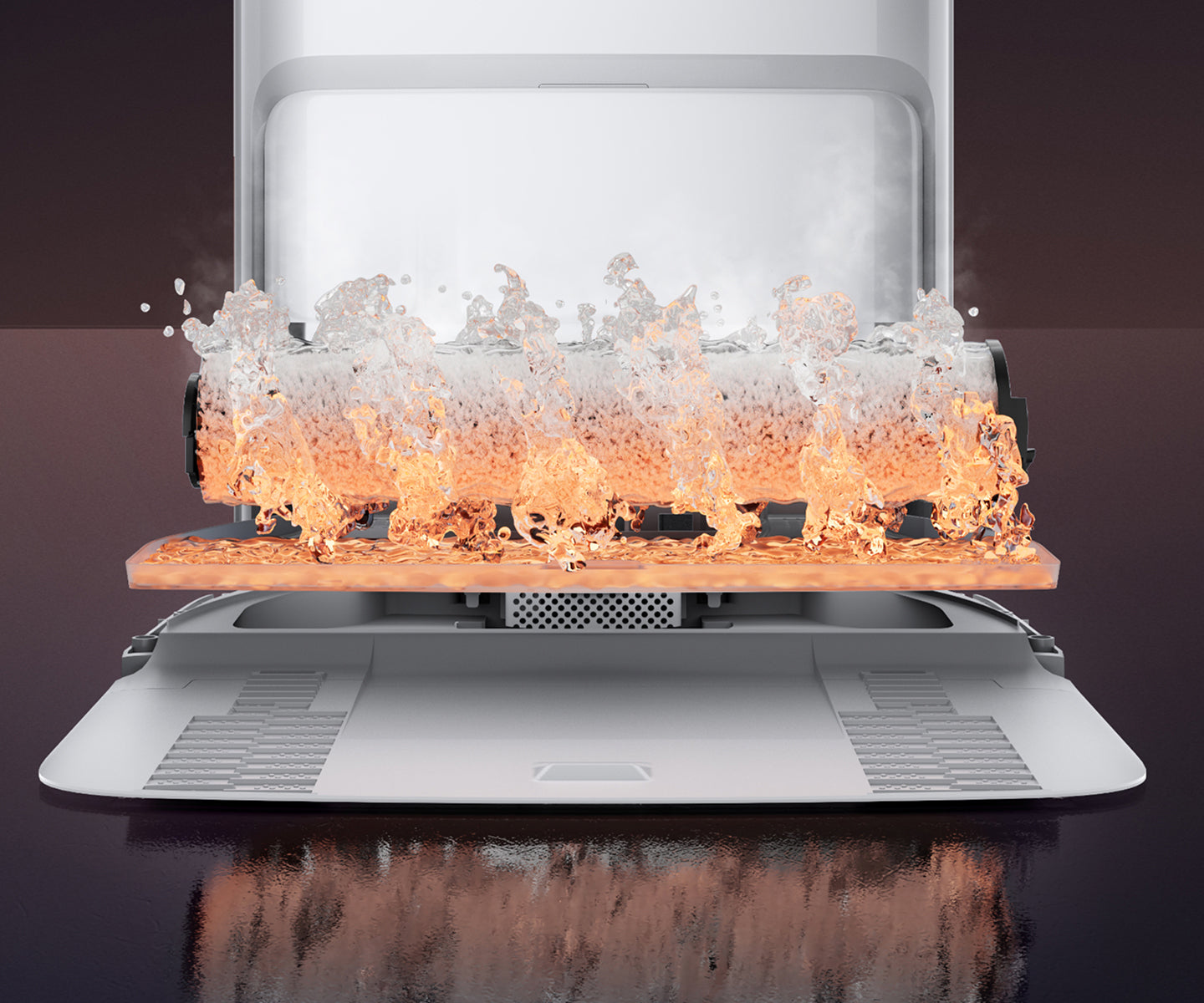 Stacja dokująca podgrzewa wodę do temperatury 80°C w celu dokładnego czyszczenia, zdezynfekowania mopa i usunięcia uporczywych plam i bakterii*. Trzy dodatkowe ustawienia temperatury (temperatura pokojowa / 45°C / 60°C) dostosowują się do różnych potrzeb związanych ze sprzątaniem.