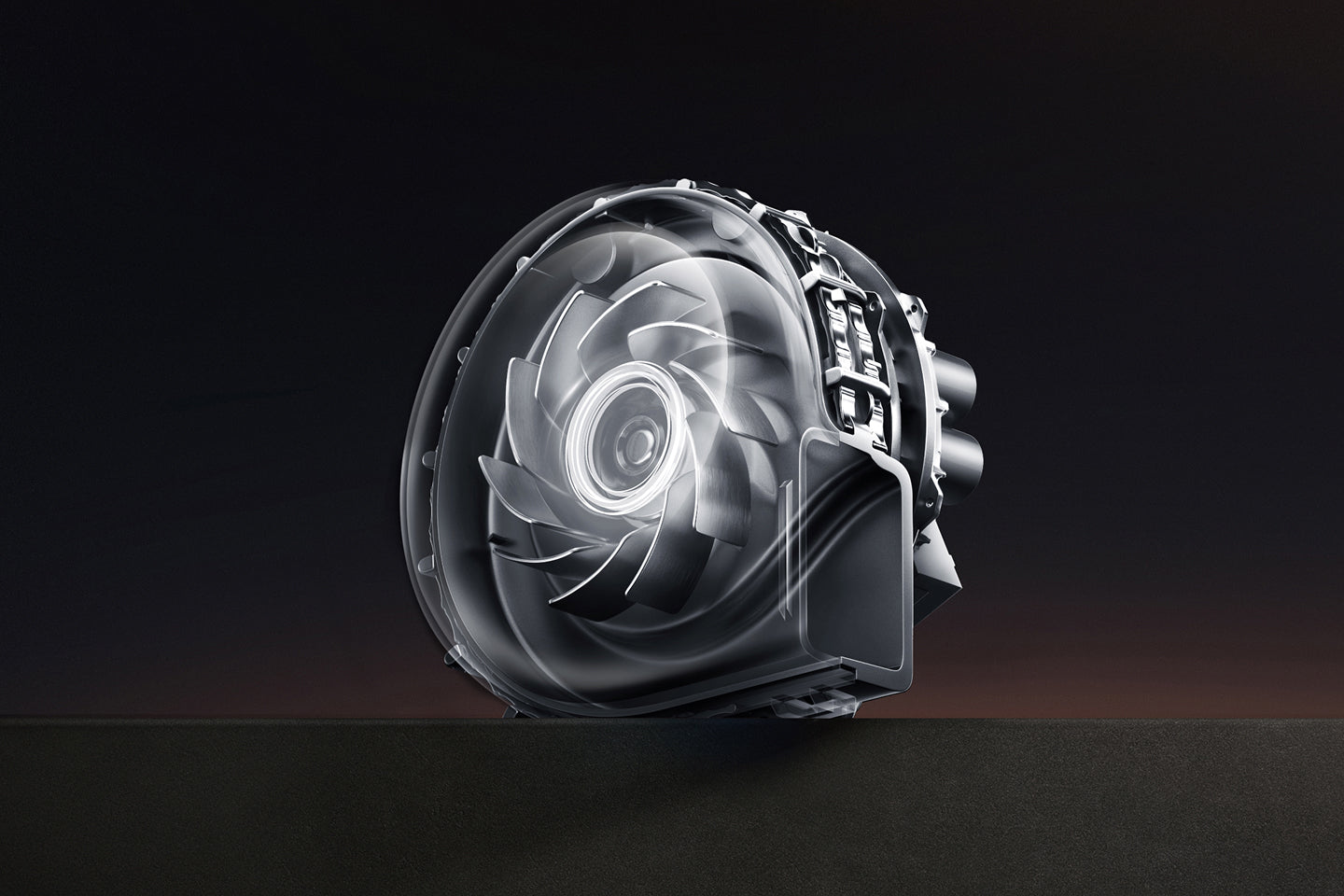Zastosowany w modelu Z60 Ultra Roller Complete silnik TurboForce 9 o dużej prędkości, wyposażony w wydajny system ssania o sile 28 000 Pa*, ułatwia zbieranie włosów, kurzu i nawet 99%* dużych zanieczyszczeń.