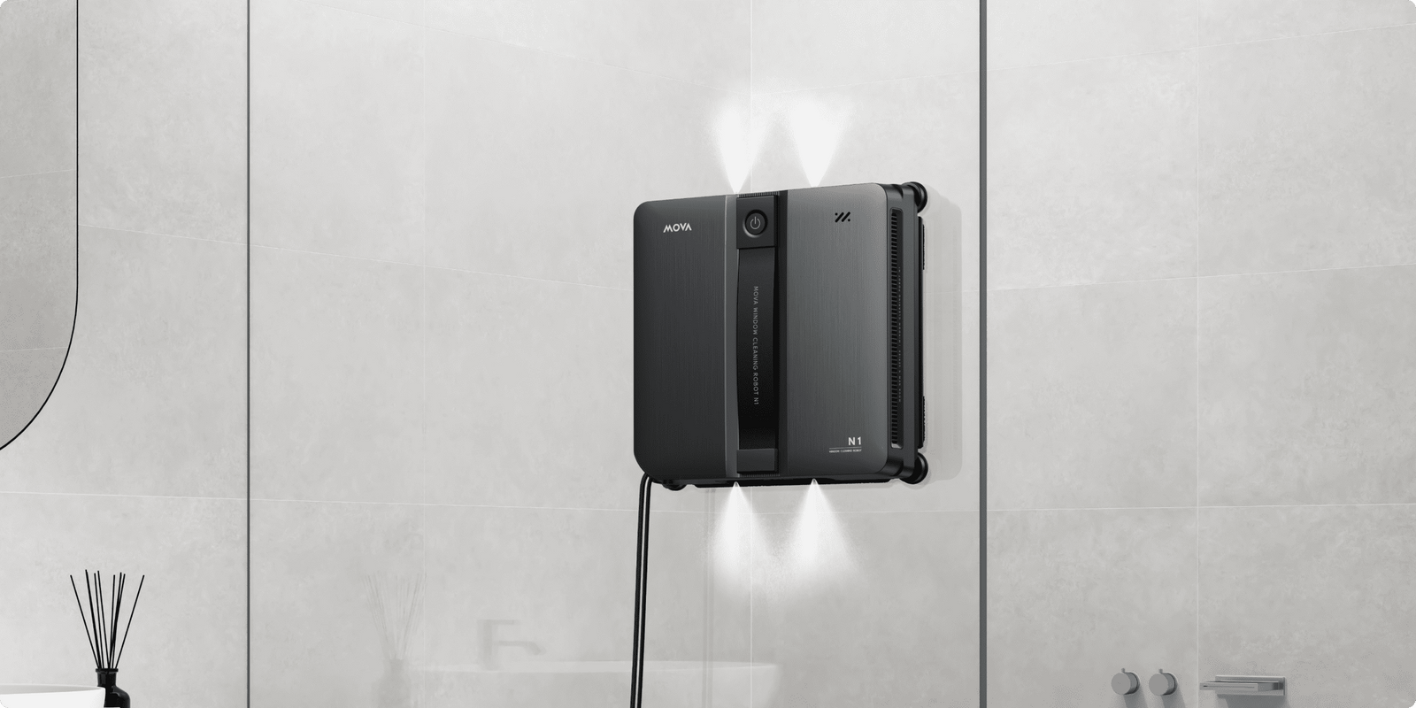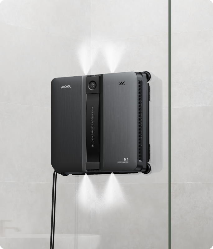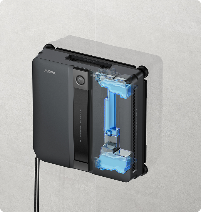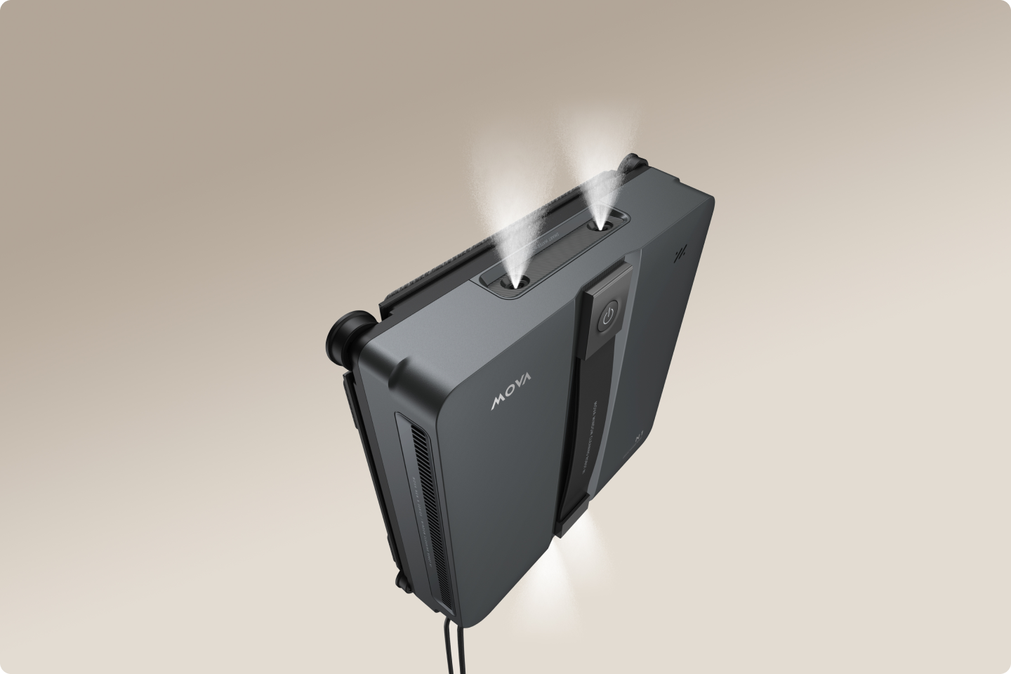 System podwójnego zraszania wytwarza wysokociśnieniową mikro-mgiełkę, która rozpuszcza brud i minimalizuje powstawanie zacieków. W połączeniu ze ściereczką z mikrofibry o wysokiej chłonności wody, robot równomiernie przeciera powierzchnię w czasie rzeczywistym. Duży zbiornik na wodę o pojemności 120 ml* pozwala umyć do 32 m²* okien w jednym cyklu*.