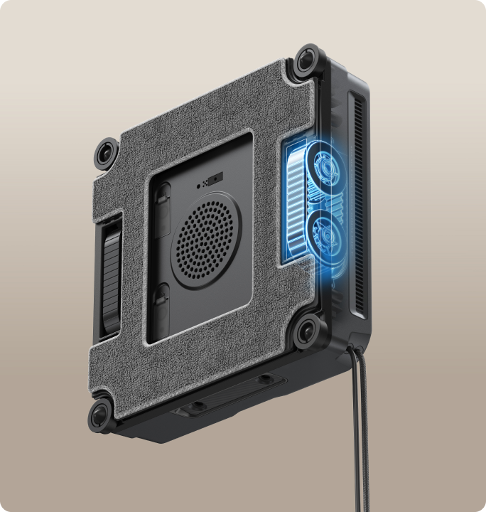 Potężna siła ssania 8000 Pa:* Pewnie utrzymuje robota na powierzchni