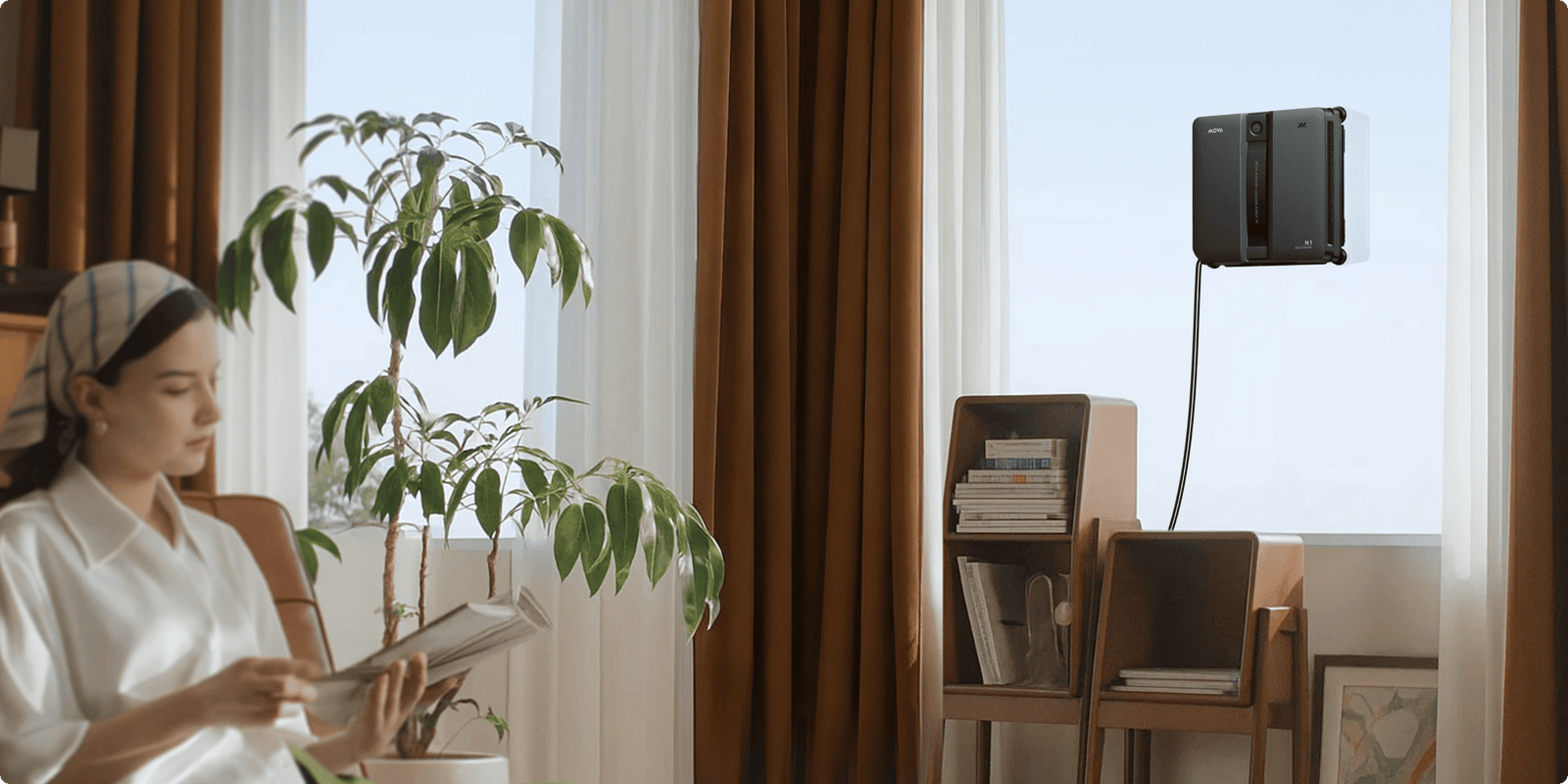 Wystarczy jedno dotknięcie, aby urządzenie przyssało się do szyby i rozpoczęło pracę – bez skomplikowanej konfiguracji. Do wyboru są dwie metody sterowania: przycisk na obudowie lub bezprzewodowy pilot.