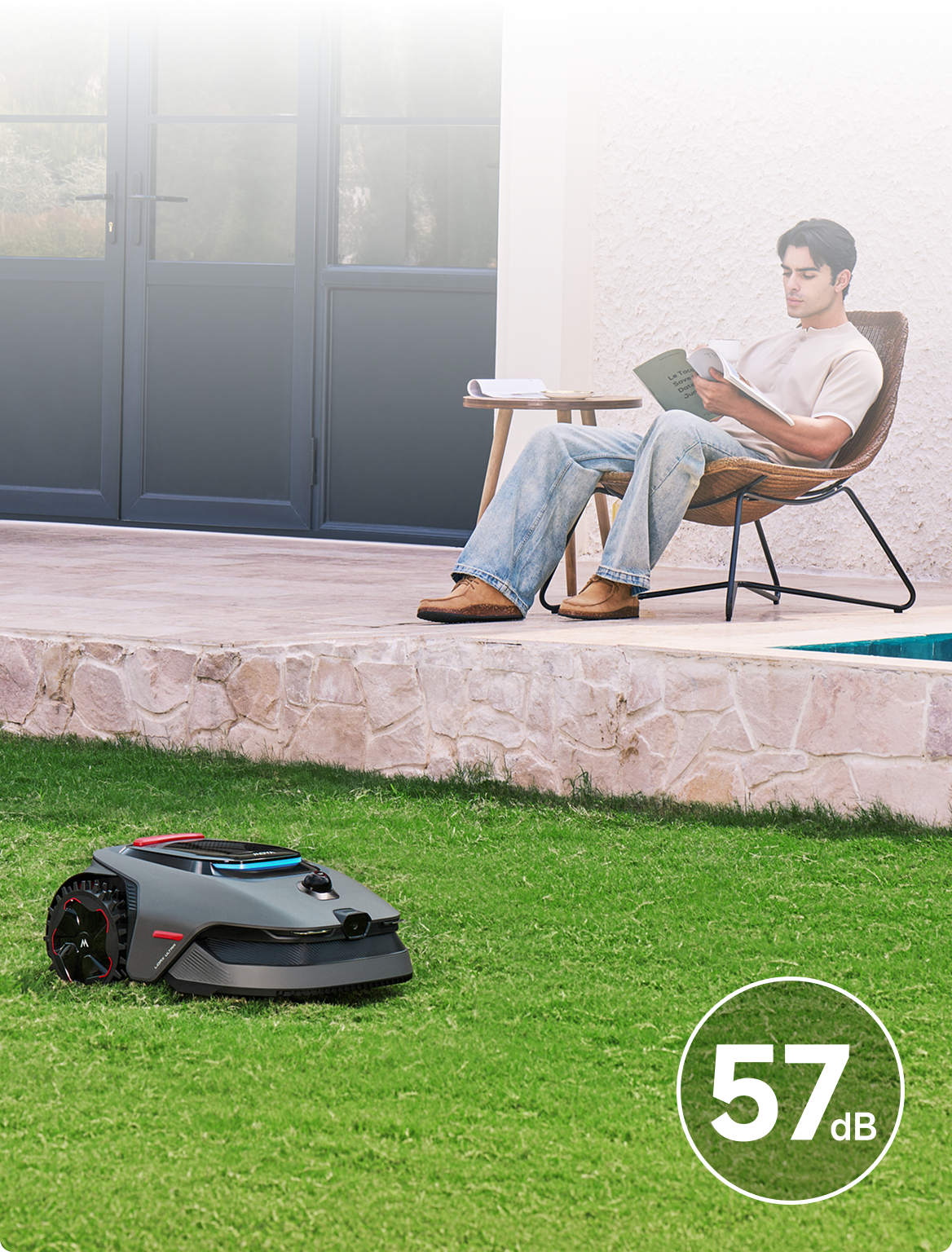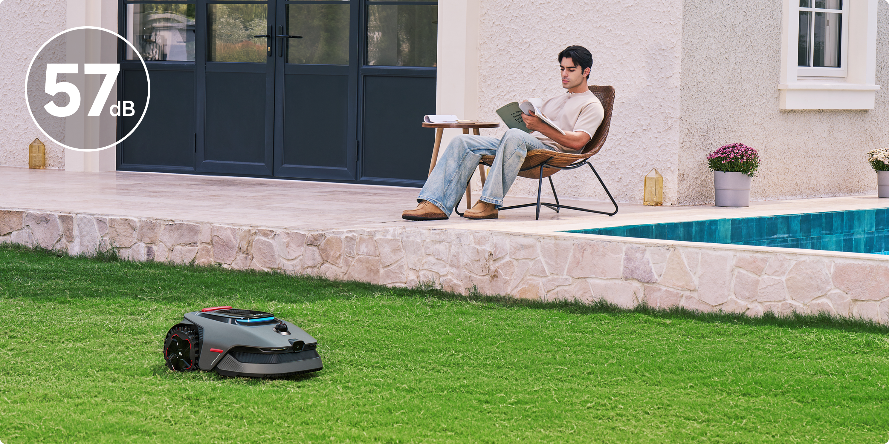 * Wartość „57 dB” przedstawia poziom głośności kosiarki w standardowym trybie cięcia.