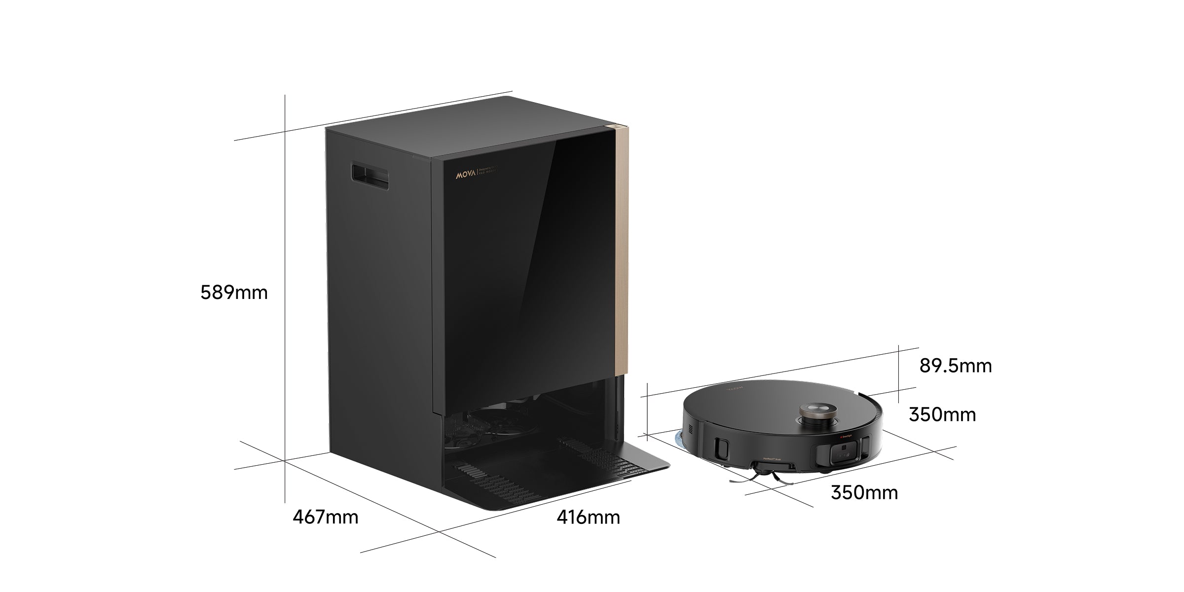 * 10 mm, 10,5 mm: na podstawie danych z wewnątrzzakładowego laboratorium. Wysokość podnoszenia jest definiowana jako odległość między górną częścią mopów lub włosia szczotki a podłożem po podniesieniu szczotki bocznej.